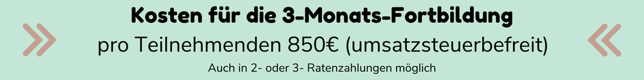 Hier kannst du dich direkt für die 3-Monats-Fortbildung anmelden. Wir melden uns danach mit einer Bestätigung bei dir per Mail.